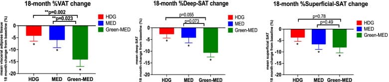 - A standard healthy diet (lean protein, veggies, fruits) dropped visceral fat 4.2%.