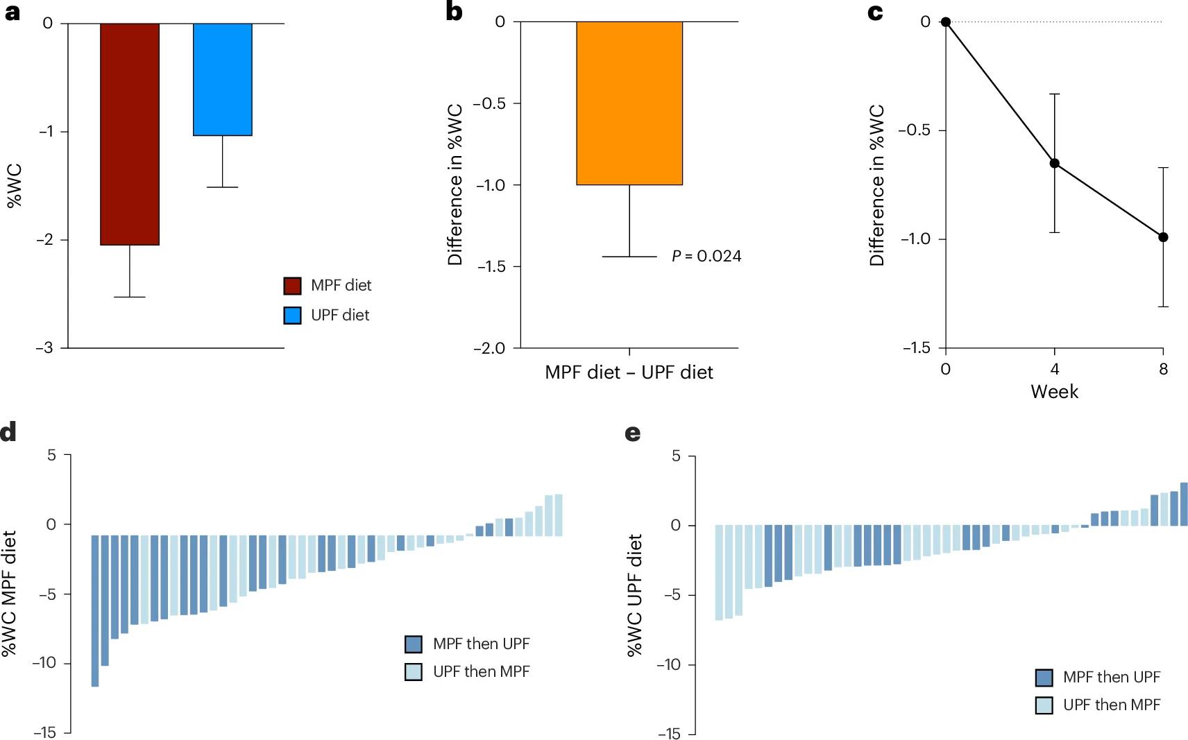 - Dicken, S.J., Jassil, F.C., Brown, A. et al. Ultraprocessed or minimally processed diets following healthy dietary guidelines on weight and cardiometabolic health: a randomized, crossover trial. Nat Med (2025). https://doi.org/10.1038/s41591-025-03842-0