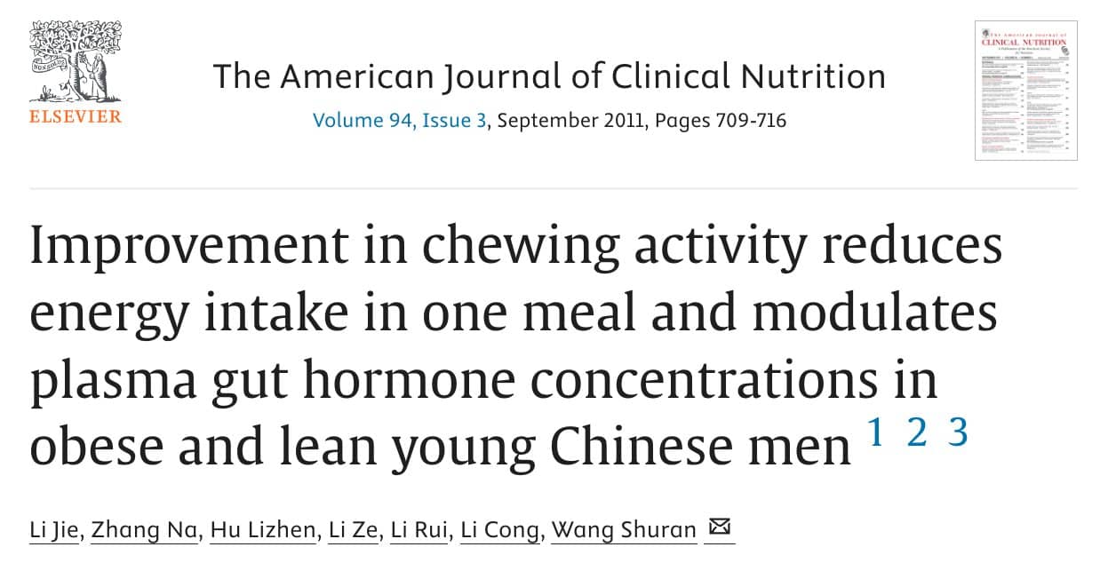 This means chewing your food enough until it becomes liquid in your mouth before you swallow. 20 to 40 chews per bite, depending on texture. Chewing each bite 40x vs 15x reduced calorie intake by ~12% for a meal. It also lowered ghrelin and increased GLP-1 and CCK, hormones linked to satiety.