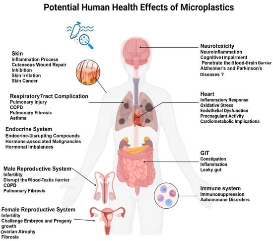 Microplastics in the body are linked to inflammation, oxidative stress, cancer risk, heart attack, impaired fertility, metabolic and gut disruption, and possible immune and neurological damage.