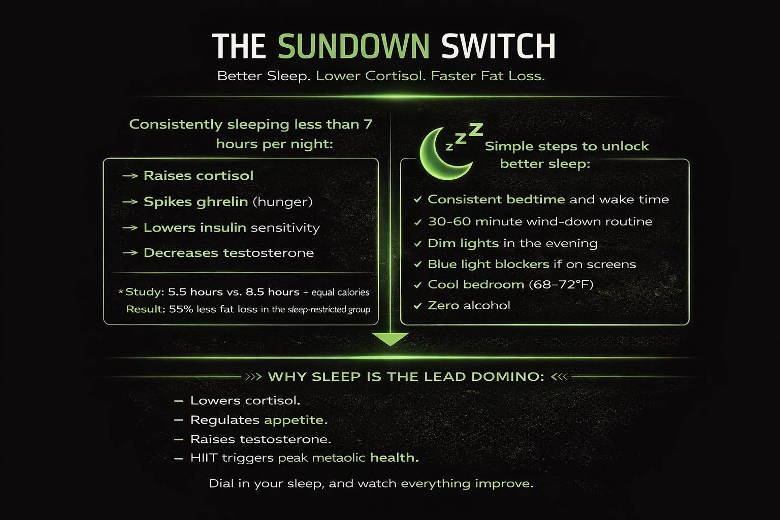 Sleep is the lead domino. Fix that, and a lot of other things fix themselves.