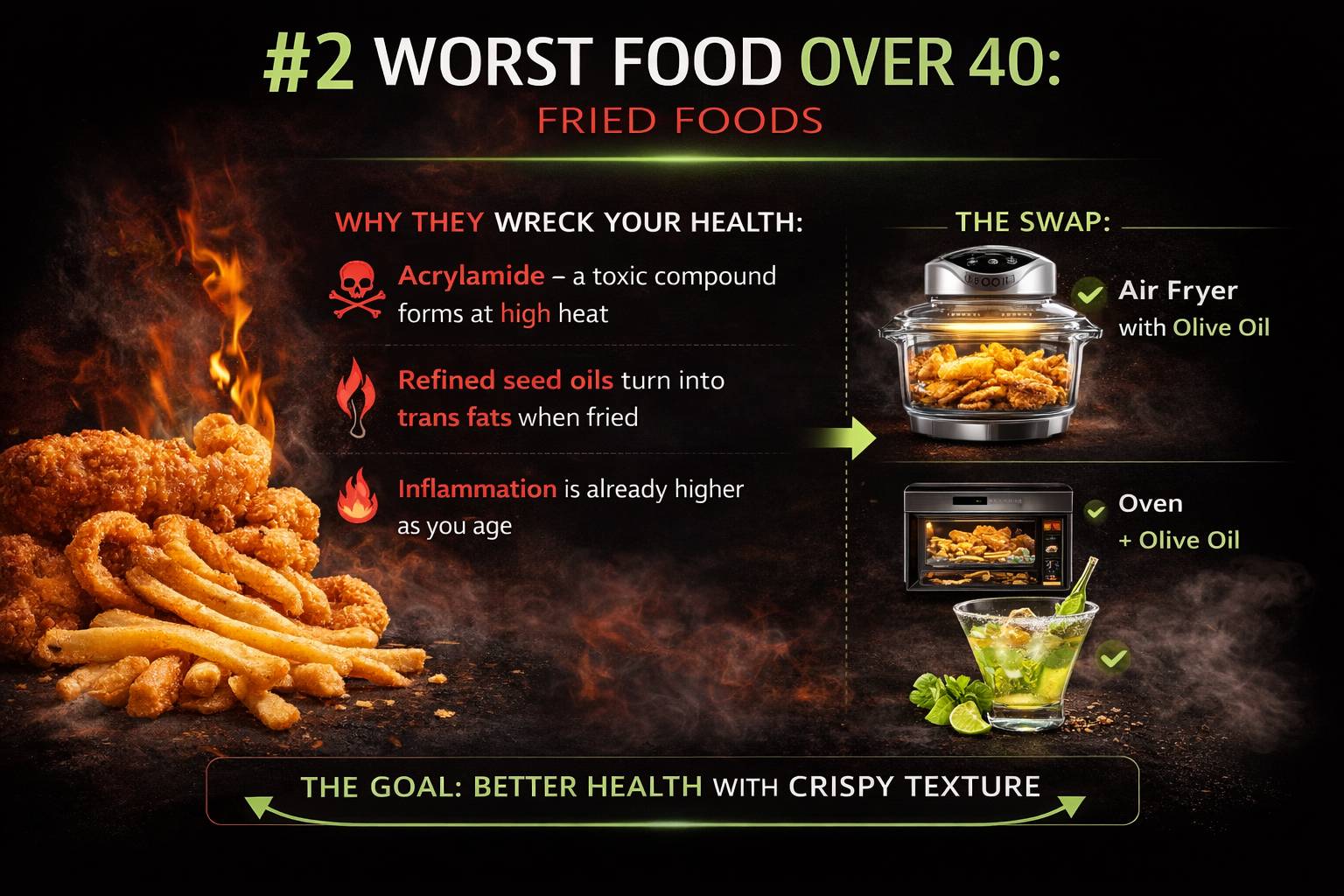 After 40, your body is already running with a higher baseline inflammation. Fried foods pour gasoline on a system that's getting worse at putting out fires.
