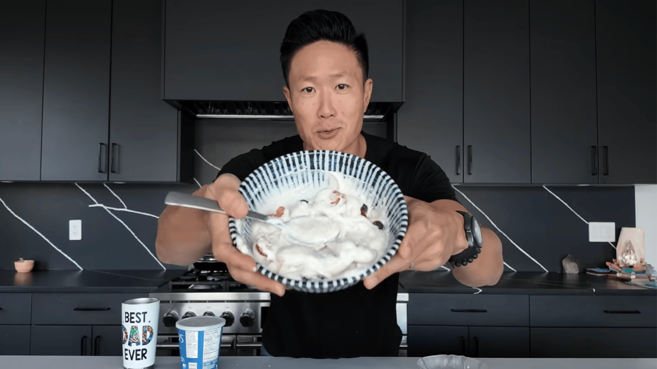 Greek yogurt is the foundation, and it serves as the base. You're getting 15 to 20 g of protein along with active cultures that support your gut microbiome. Right off the bat, you're seeding your gut with good bacteria first thing in the morning.